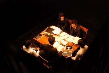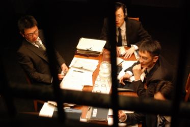 を求刑する検察団を相手に、
